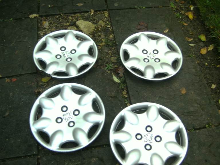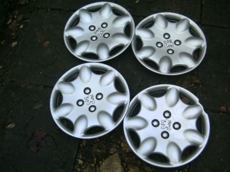 GENUINE SET 4 , PEUGEOT 13 INCH WHEEL TRIMS,RARE ORIGINAL SET 13 s , OFF PEUGEOT 205