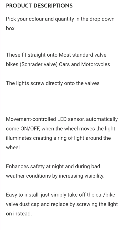 GENUINE TYRE FLIES PURCHASED INCORRECT PRODUCT & CAN'T BE BOTHERED WITH THE HASSLE OF RETURNING THEM.