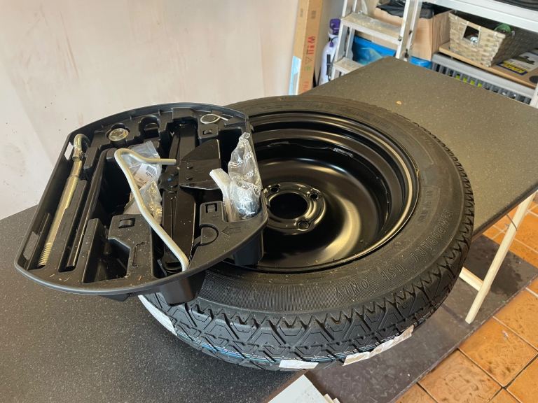 * Kit includes tools to remove the wheel, including a jack. The tools are stored in a box that is fitted underneath the boot floor with the spare wheel.