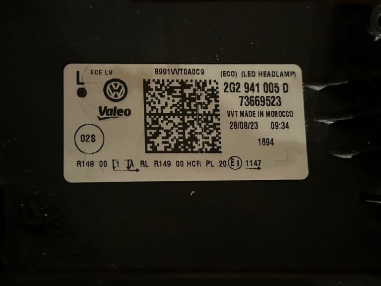 Posting for under a monthGenuine Volkswagen Polo Mk6 2022- (2G Facelift Model) Passenger Side Headlight