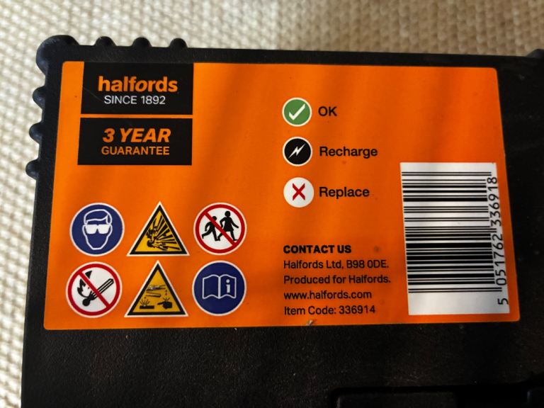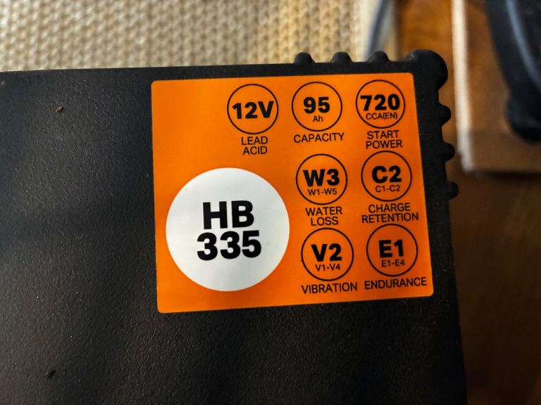 Halfords HB335 Car Battery 12V 95Ah 720CCA. Lead acid battery. Good as new, been in use for 1 year.