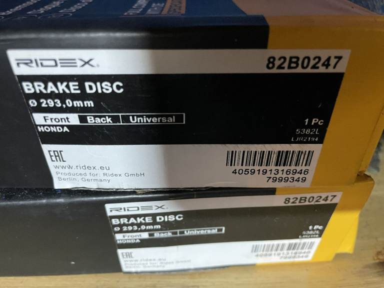 Posting for 12+ yearsHonda CR-V 2012-2016 Mk4 Front Pads and Discs
