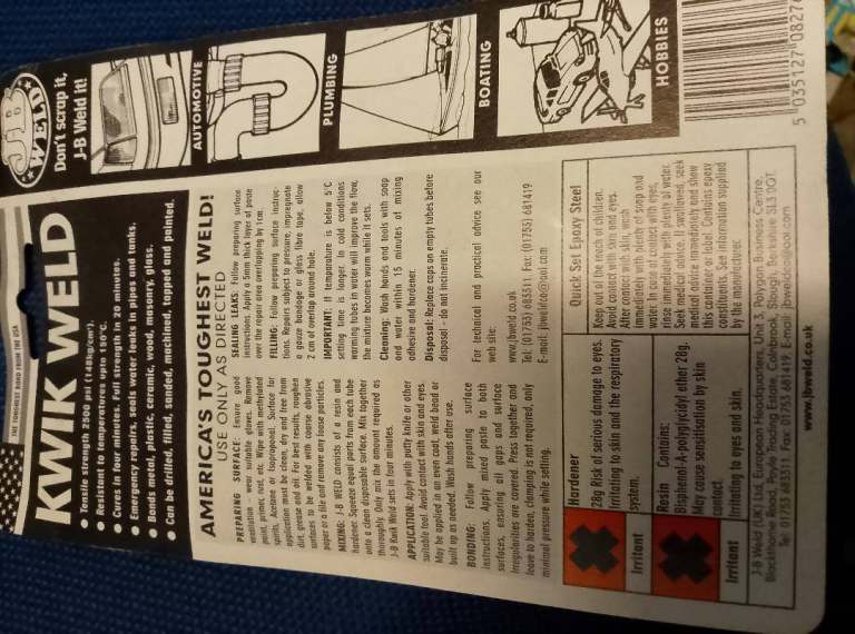 We have some packs of Kwik weld apoxy bonding and filling agent.