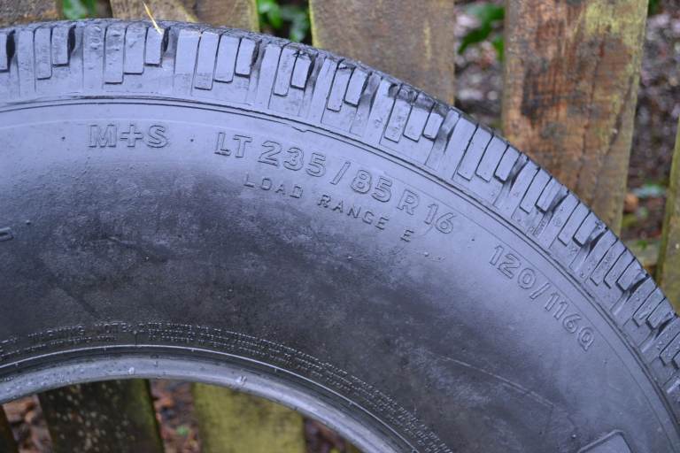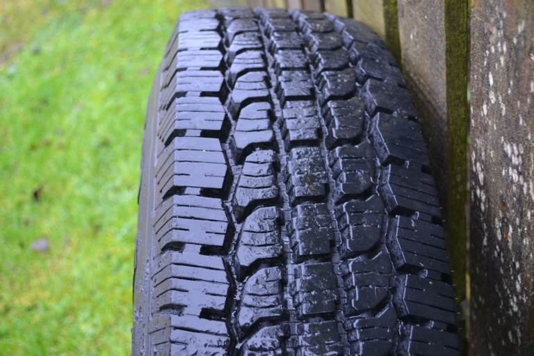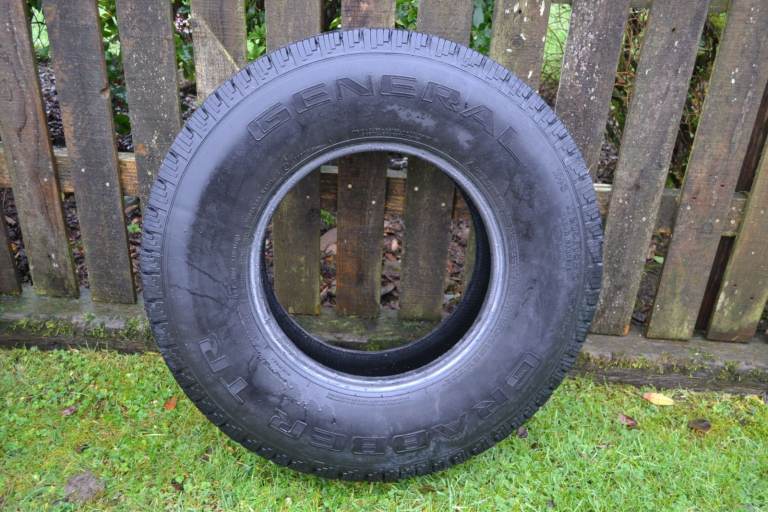 A single General Grabber M+S tyre in excellent condition, with no obvious external damage. Recently removed from a Defender 110 and now surplus to requirements here. Tread depth approximately 12 mm at the centre. Size is 235/85R16 - only suitable for a 16 inch rim. This would be ideal for a Defender 90 or 110.