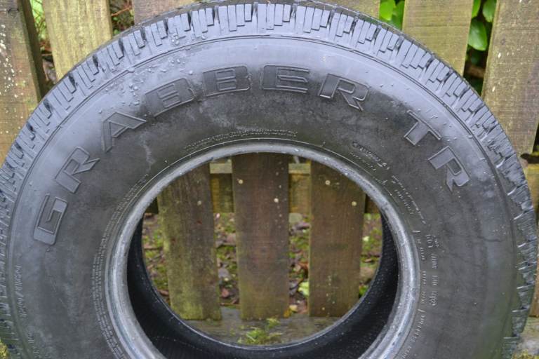 Land Rover Defender single General Grabber M+S 235/85R16 with 12 mm tread.