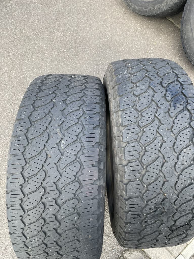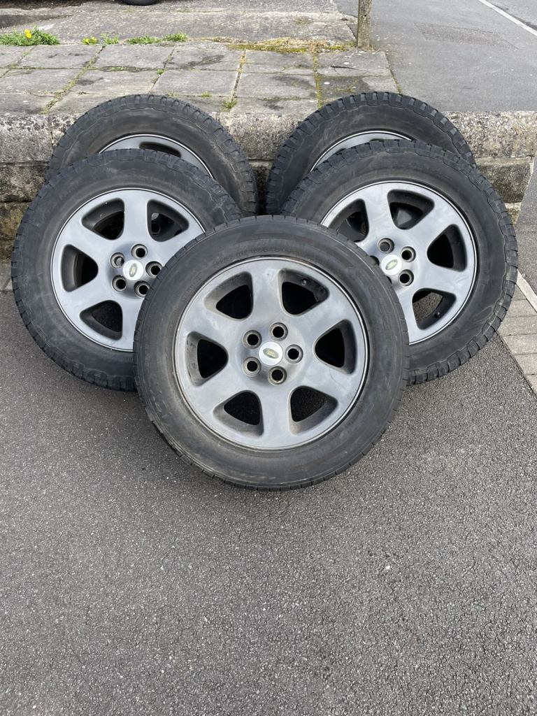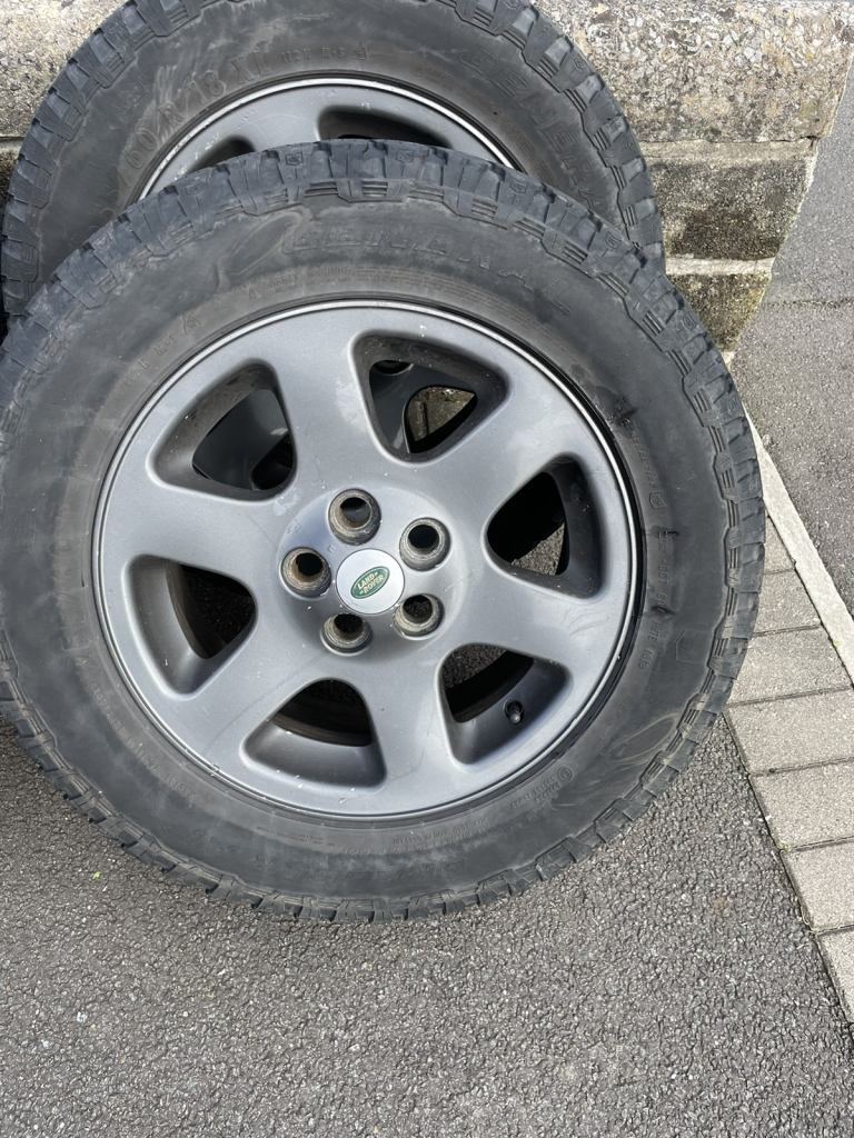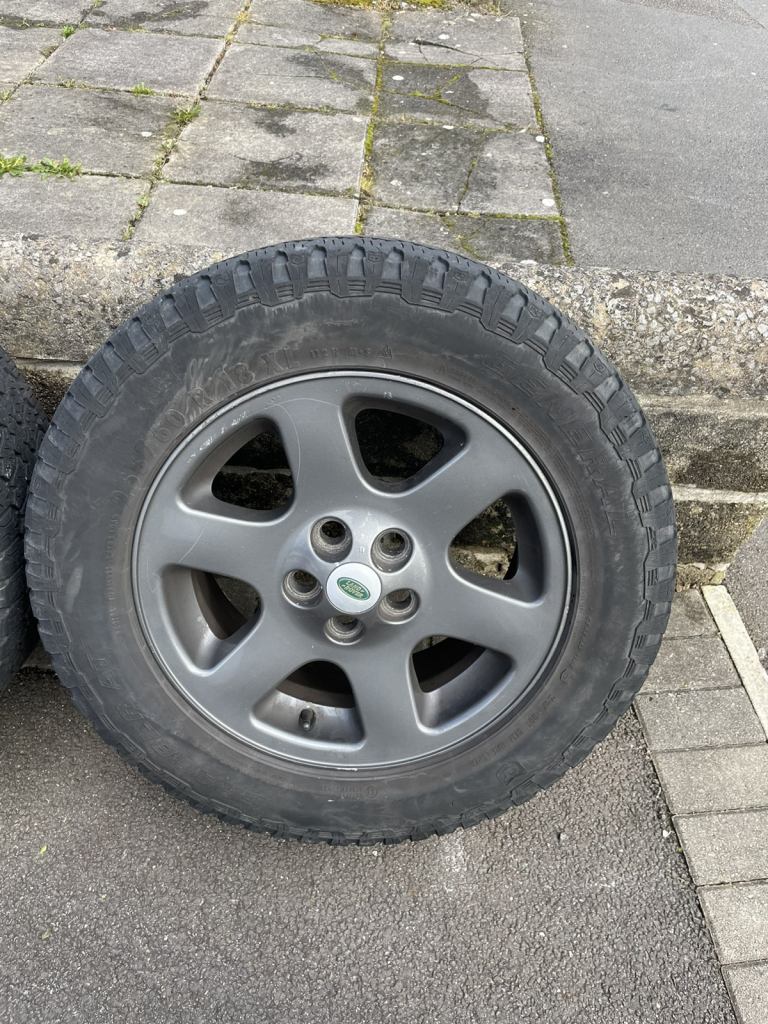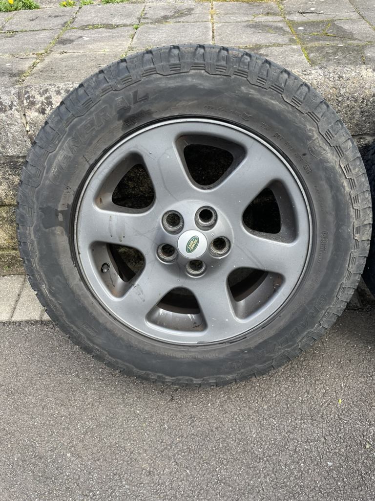 5 alloys, 4 fitted with at grabber’s. A decent bit of tread left. A few marks but all true and straight and hold air fine. The wheels would look a lot better after a wash. I will not respond to is this still available messages. If the add is live the wheels are for sale.