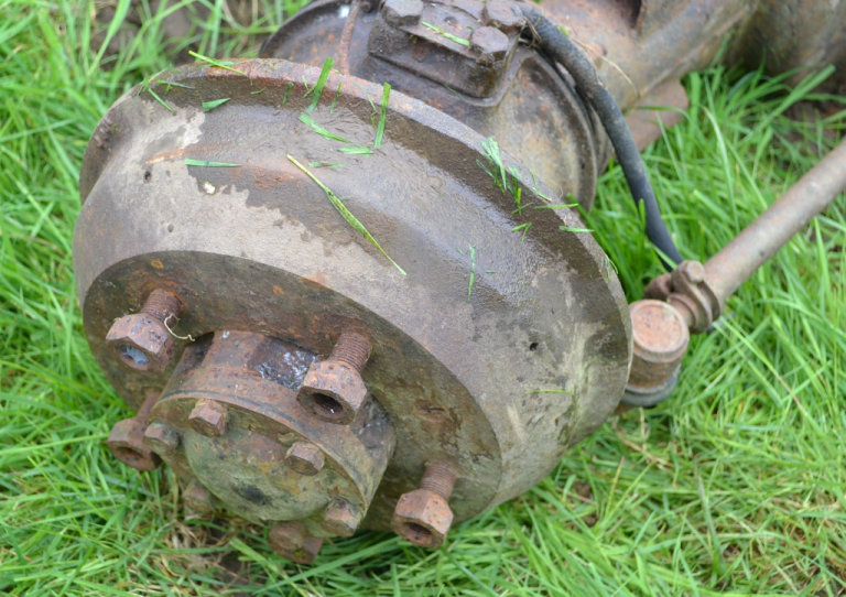 Rear - complete axle with hubs, case, differential, brakes and all shafts