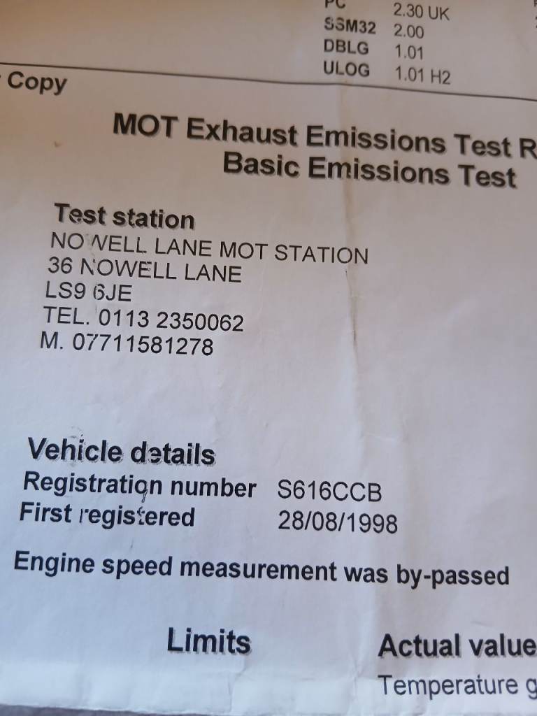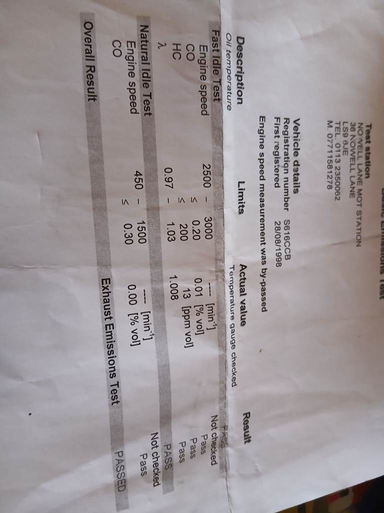 Perfect, low mileage engine (see photos of its exceptionally good MOT Exhaust Emissions Test Results).