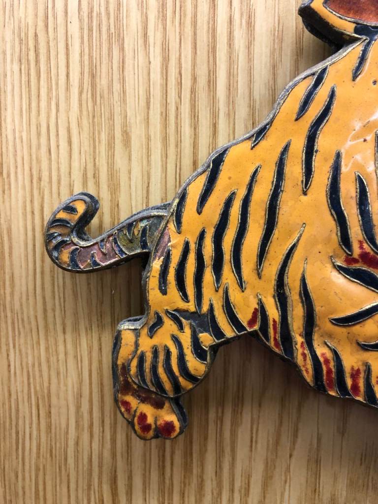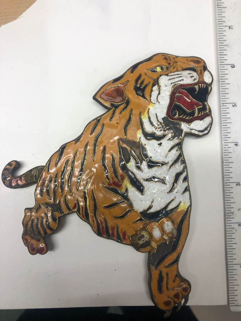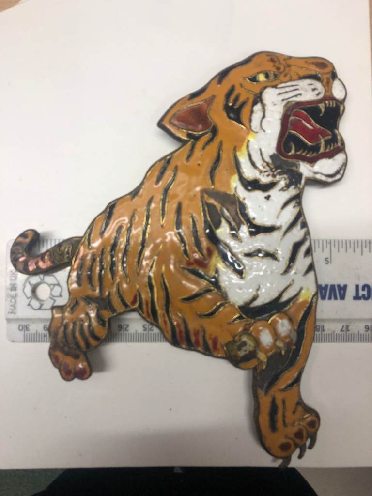 Here we have a Leyland Royal Tiger Bus Badge, an original item in as removed condition. This comes from the 1950's and was fitted to the front of the Bus therefore there are a couple of chips in the enamel. The photos can be enlarges to see what I mean. All the 3 fixings on the rear are very good and have there nuts and washers.