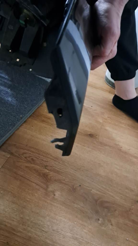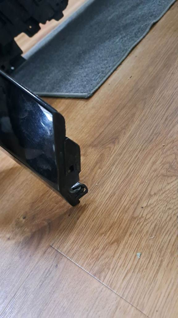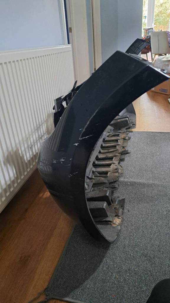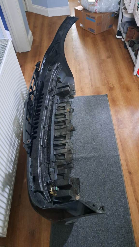 Used so has markings/scratches on it and a split in the middle bottom, outer casing. Is not in perfect condition but is usable. One of the sides has a broken attachment, where the screw goes through (see second to last pic) but we still managed to attach it to the car with a screw and washer. I just preferred to replace my bumper with one with sensor holes. This one has no sensor holes.