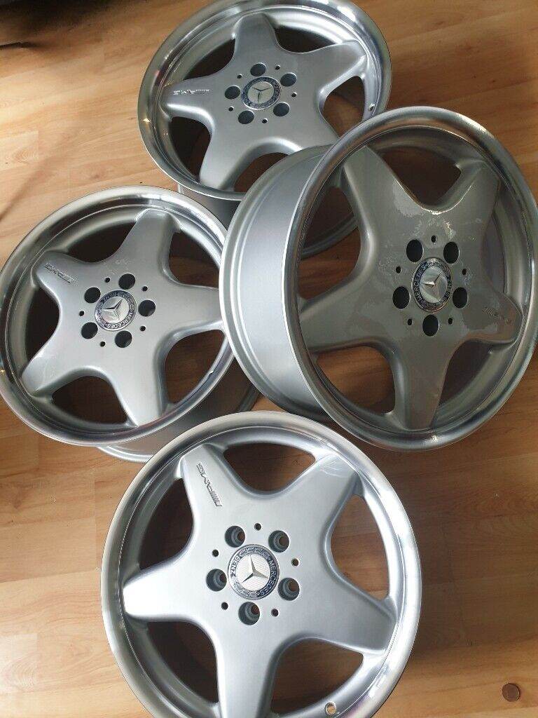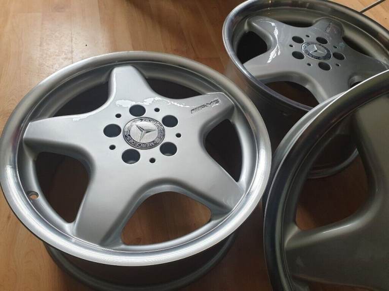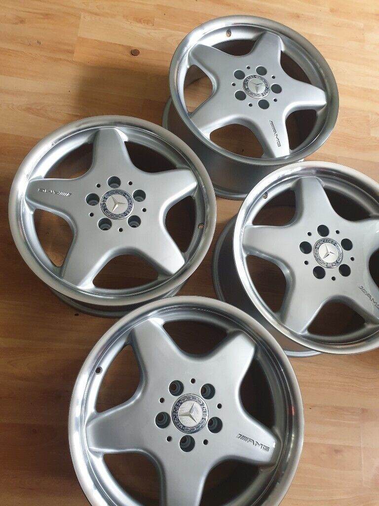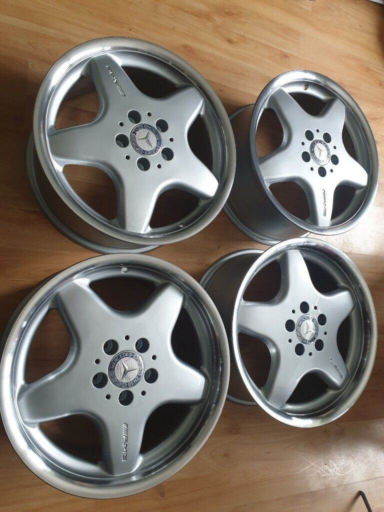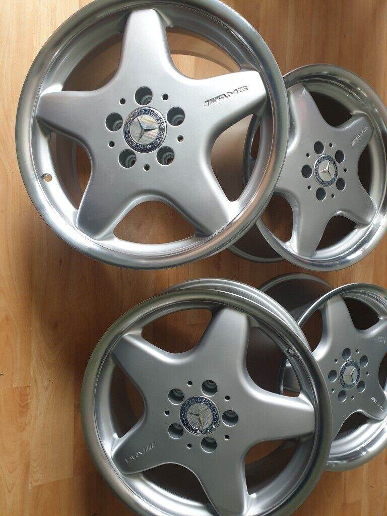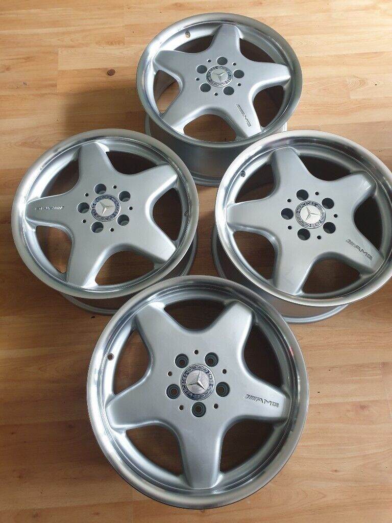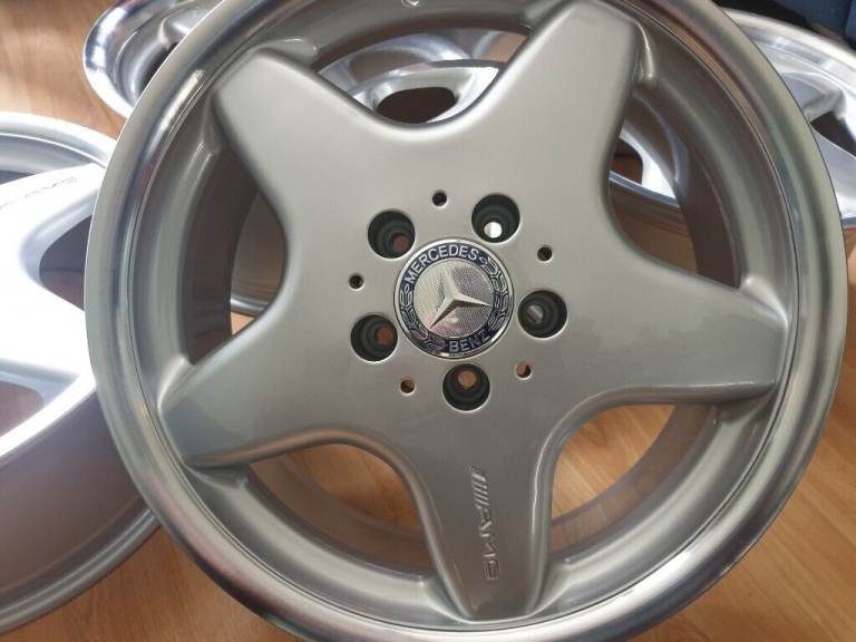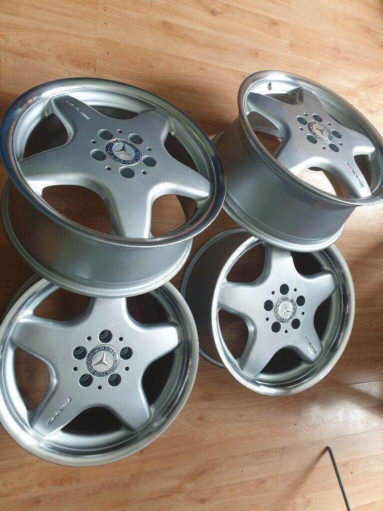 1 SET OF MERCEDES - BENZ AMG CLK 17 INCHES ALLOY WHEELS FULLY REFURBISHED AND IN SILVER WITH DIAMOND CUT LIPS AND NEW CENTER CAPS, IN STUNNING CONDITION. 7 1/2 X17 FRONT AND REAR 8 1/2 X 17 . PLEASE NOTE BUYER COLLECTS AND NO TIME WASTERS OR NO OFFERS AS STATED VERY SERIOUS ENQUIRIES ONLY.