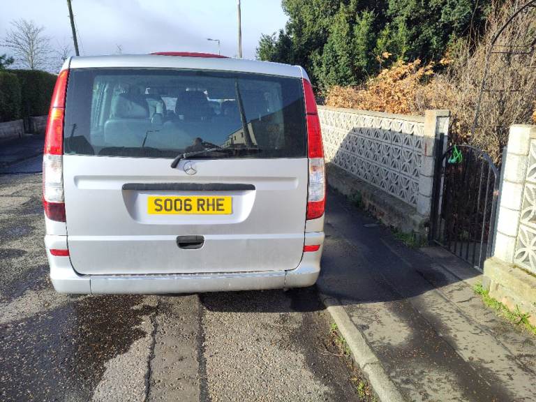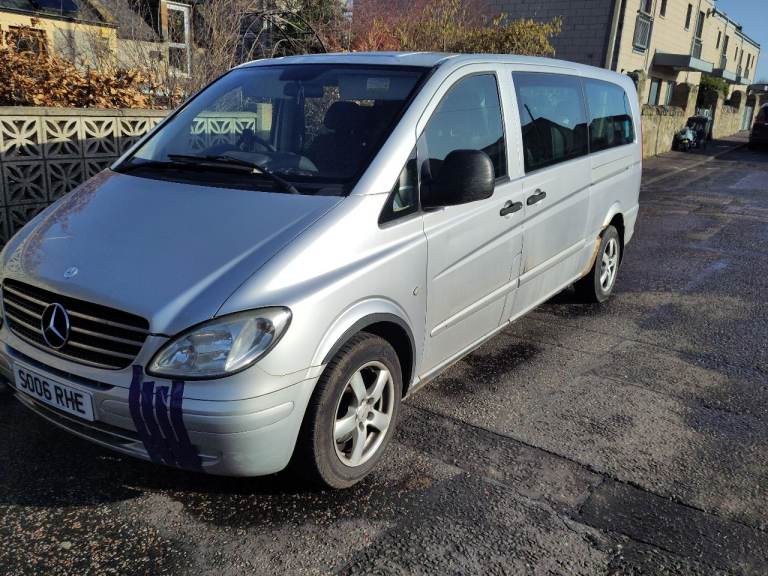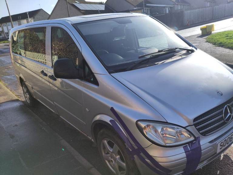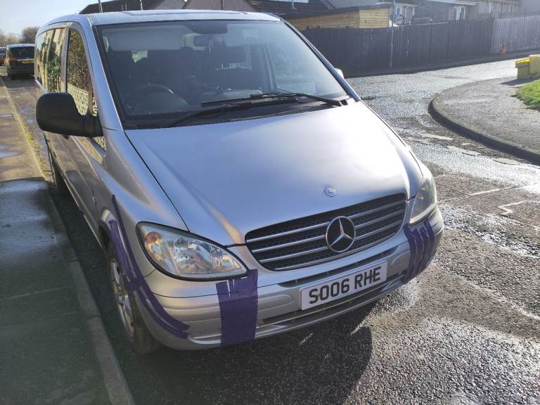 Selling my vito tourer 9 seater for spares or repairs. No MOT. Rusty bodywork. Good engine with 148.500 miles. Good 4-season tyres. 06 plate. engine runs perfectly. Including some beautiful purple gaffer tape holding up the front bumper.