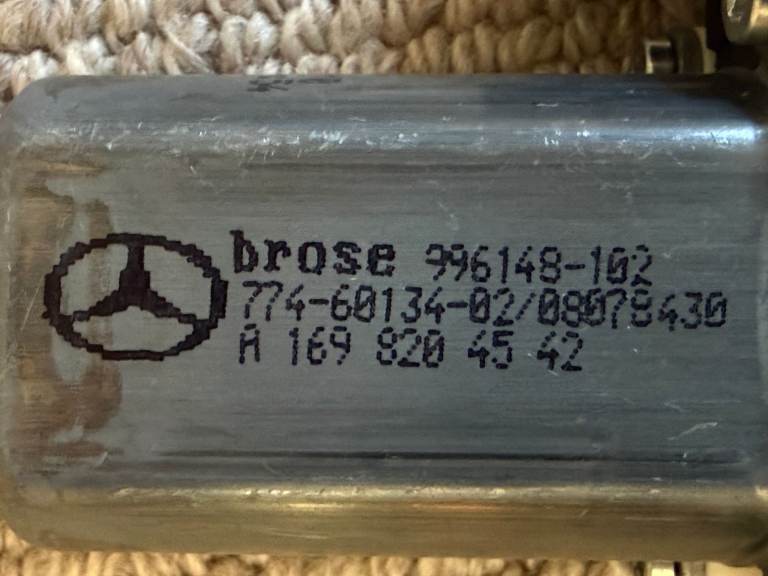 Mercedes-Benz Door Window Glass Motor for W169 A-Class (2004-2012), W245 B-Class (2004-2011) etc. Removed from a 2008 Mercedes-Benz B200 CDI W245. Genuine Mercedes-Benz - Siemens VDO/Brose manufactured part.