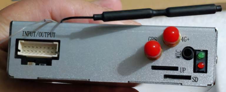 Includes an external microphone, GPS antenna & 4G antenna and has a SIM card slot.
