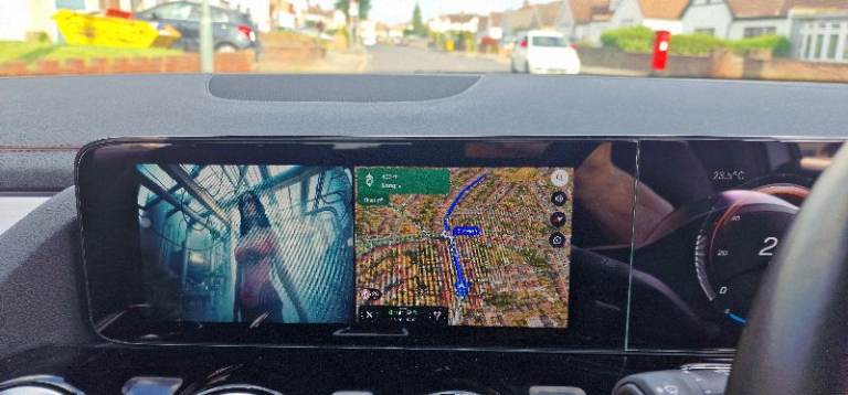 Both MBUX and Android at the same time. Change from one to another by pressing and holding the button for a few seconds