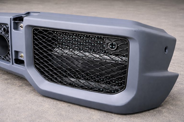 Premium AMG G63-style front bumper fits W463 G Wagon models from 1990-2018. Primed and ready to fit. Complete with fixing brackets. Comes with PDC holes. Dummy PDC blanks available if required. Brand new in box. Other new parts available; bumper trim covers, dummy radar, number plate holder, headlight surrounds and DRL, GT or AMG Style grille, LED turn signals, rear smoked LED lights, DRL,