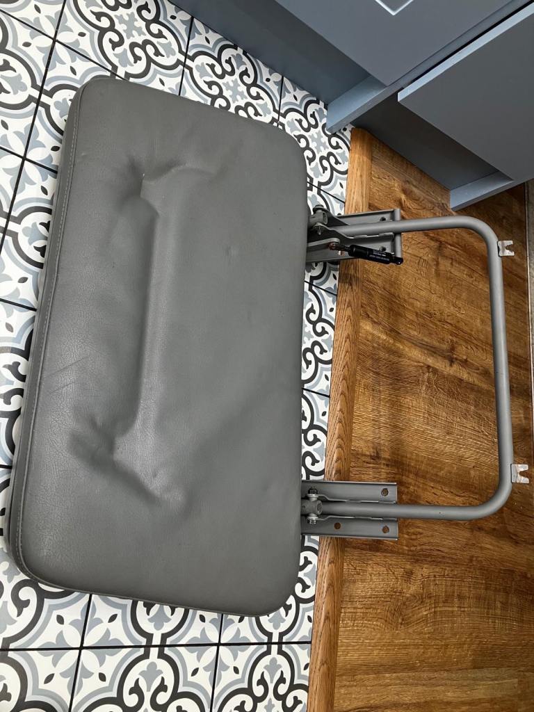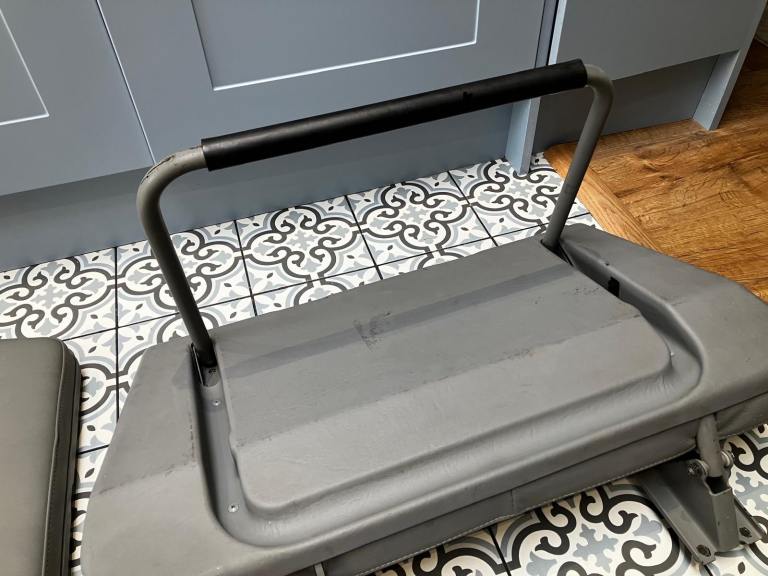 Used but fully functional – both seats fold properly. Cosmetic wear and dents on cushions (see photos), but frames and mounts are solid.