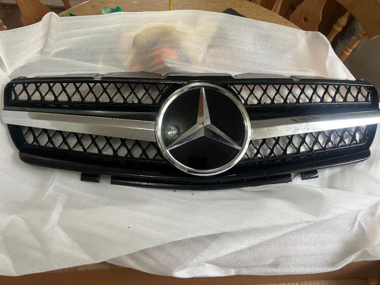 Mercedes r 230 front grill gloss black and chrome no damage like new 3 months old in box with packaging sl 500 350 etc
