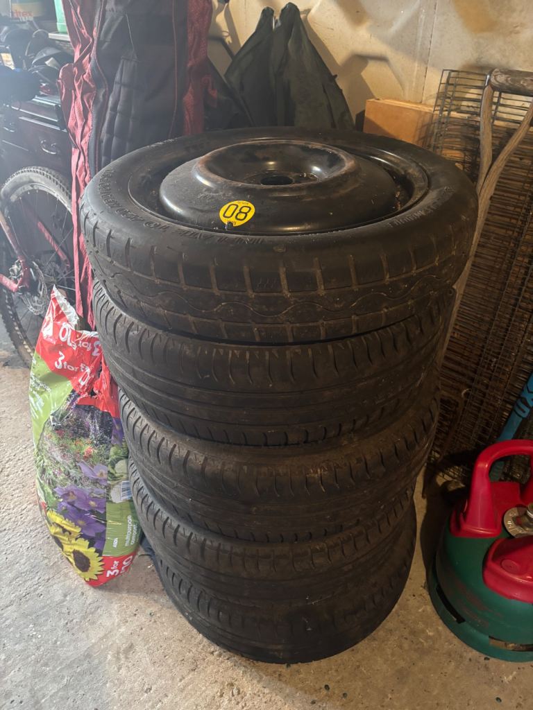 MichelinPartly used car tires still plenty of tread on them. Includes the space saver tire as well.