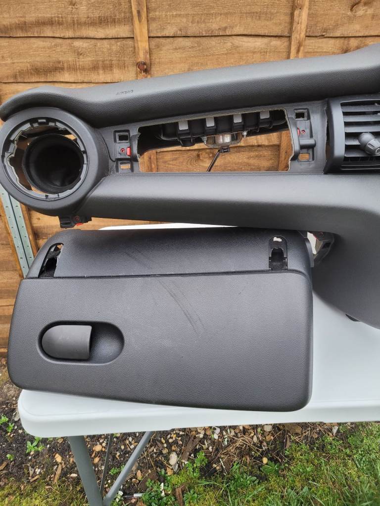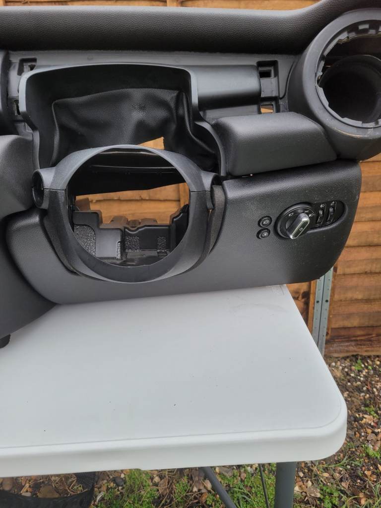 This advert is for a mini cooper f55 f56 f57 2016 dashboard complete with glove box drivers knee pad with headlight switches and passenger side air bag and driver's side air bag