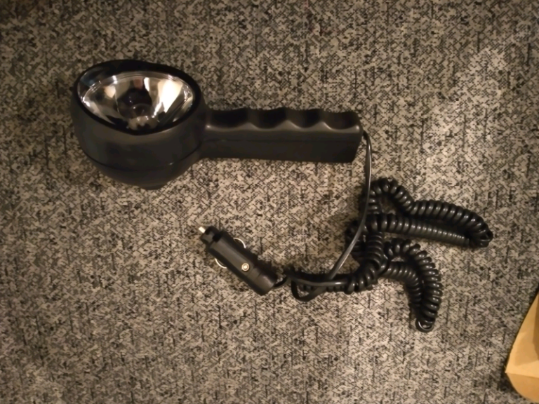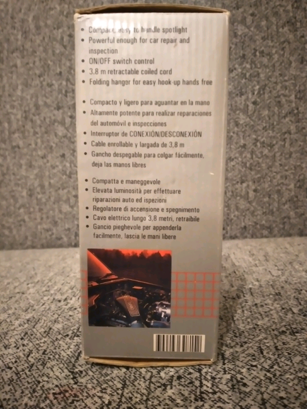 With coiled cord. For car repairs and inspection. Easy to handle. Good condition.