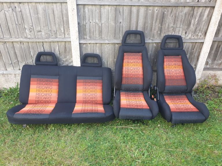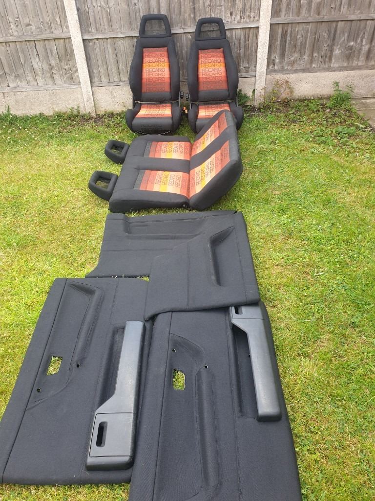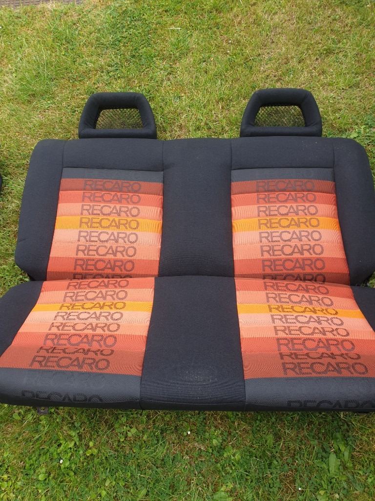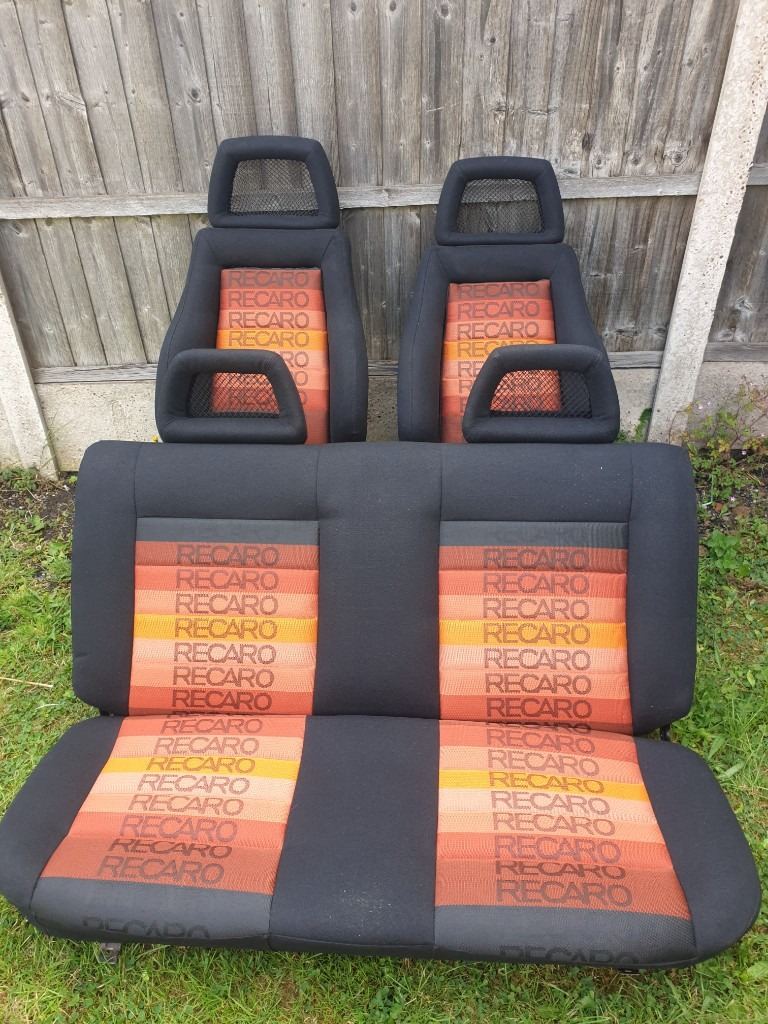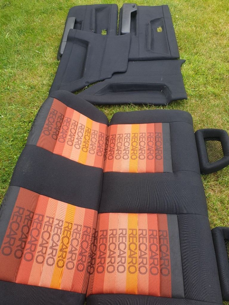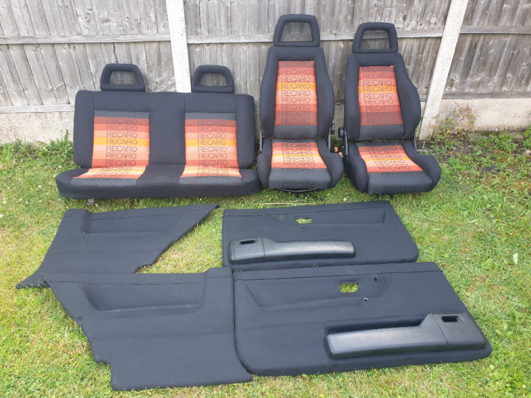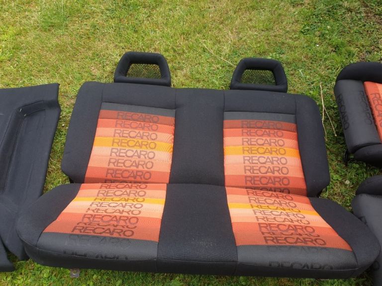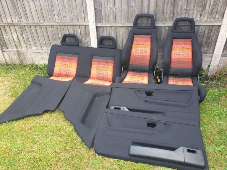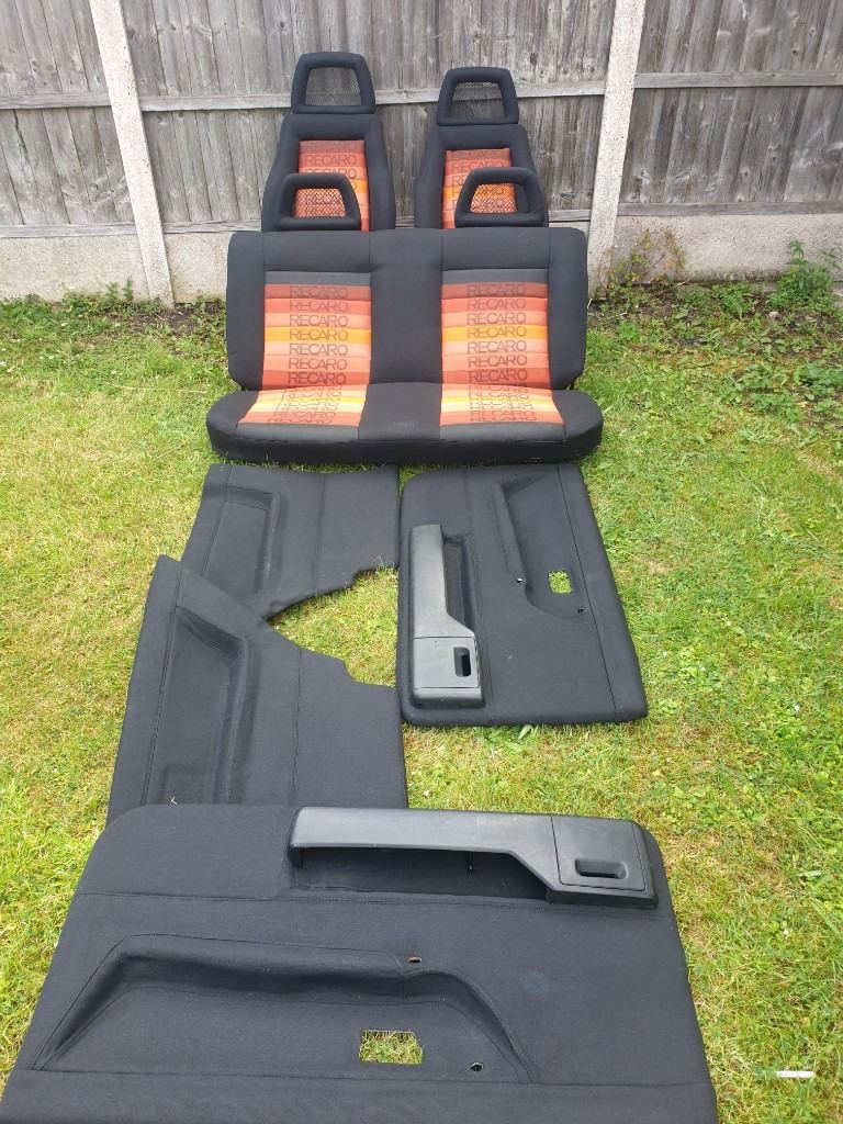 MK2 VW GOLF GTI 3DR CUSTOM RECARO INTERIOR COMES IN ORANGE SPECTRUM RECARO MATERIAL. THE FRONT SEATS ARE MK4 ESCORT RS RECARO SEATS WITH FORD CAPRI RS FISHNET HEADRESTS, THE REAR BENCH AS FISHNET HEADRESTS, FRONT AND REAR DOOR CARDS. THIS INTERIOR IS FOR MK2 VW GOLF 3DR ONLY. PLEASE NOTE THE FRONT SEATS HAVE MK2 VW GOLF SEATS RUNNERS FITTED ALREADY AND WILL FIT STRAIGHT INTO MK2 GOLF 3DR ONLY. THIS INTERIOR WOULD BE IDEAL FOR SHOW CAR OR ANY MK2 VW GOLF PROJECT. THIS INTERIOR AS NEVER BEEN SAT IN OR BEEN BACK IN ANY CAR CURRENTLY IN STORAGE AT THE MOMENT. PLEASE NOTE ALOT OF TIME AND EFFORT AS GONE INTO THIS CUSTOM INTERIOR, GETTING THE MATERIAL FROM OVERSEAS. PLEASE NOTE BUYER COLLECTS AND NO TIME WASTERS APPLY AS STATED VERY SERIOUS ENQUIRIES ONLY ALL TEXTS MESSAGES WILL BE IGNORED AND WILL NOT ENTERTAIN TIME WASTERS OR BARGAIN HUNTERS NO OFFERS AS STATED