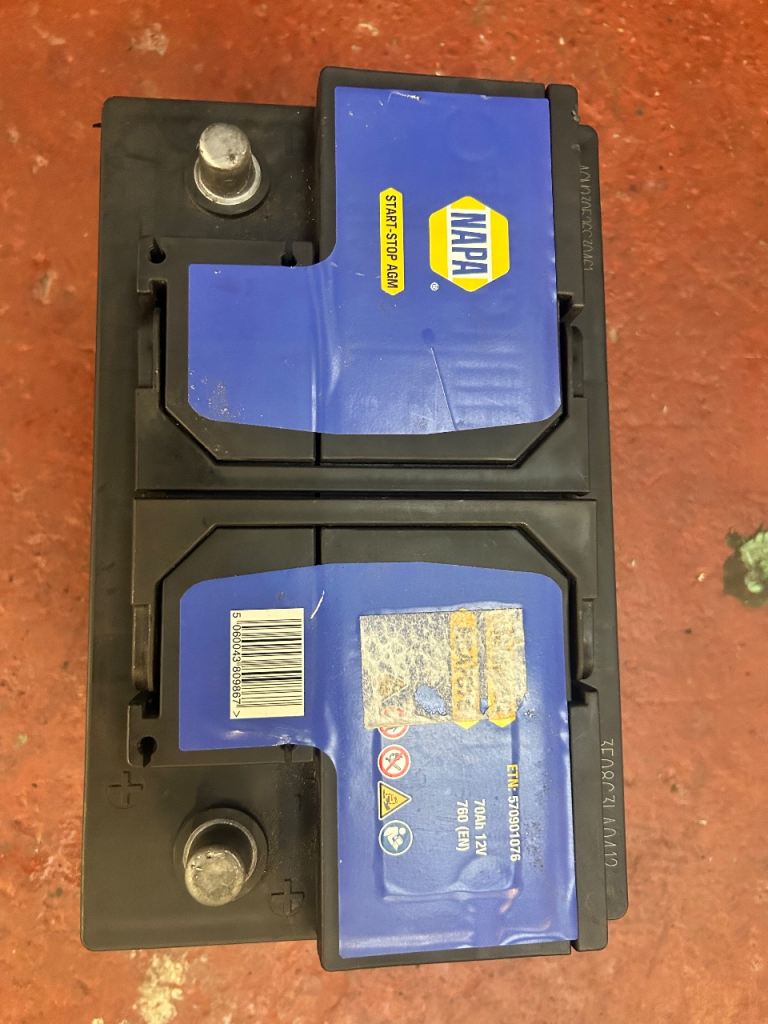 Used like new NAPA Start-Stop AGM car battery in good condition.