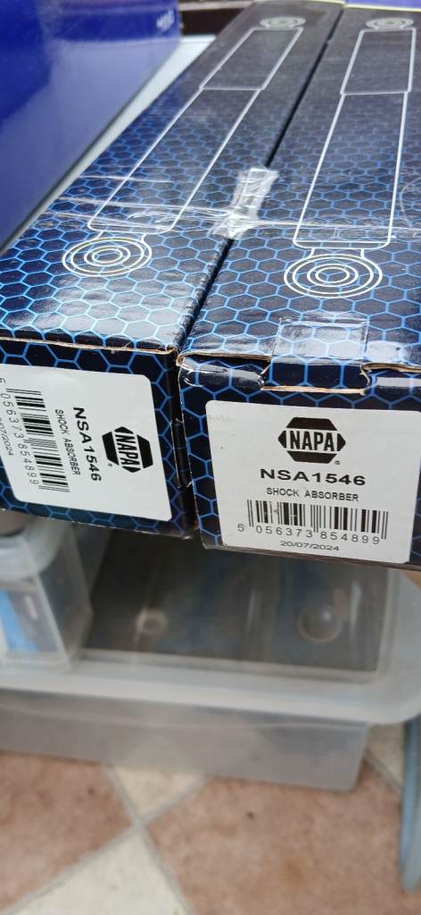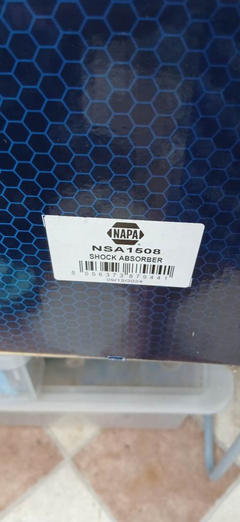 Here is a set of front and rear Napa shock absorbers. We got the wrong ones for our car even though it said it would fit. The part number for front shocks are NSA 1508, and the rear are NSA 1546.