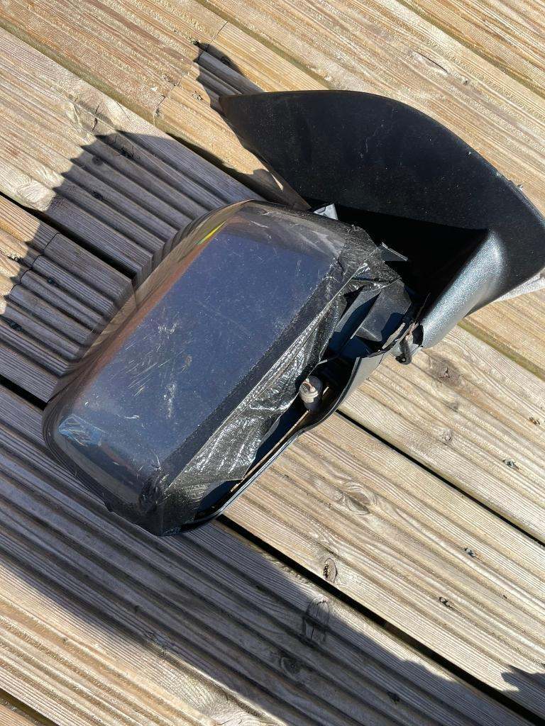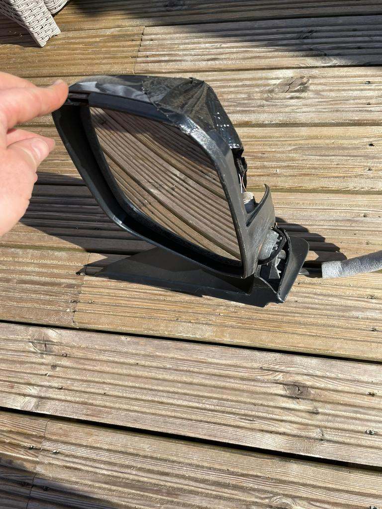 Electric heated mirror. Has damage but can be used as is or for parts. These are expensive to replace.