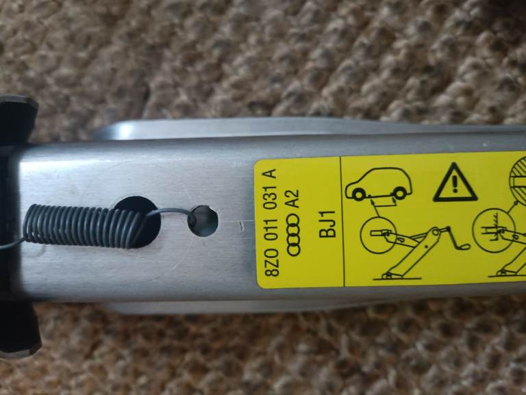 Selling an original manufacturer car jack specifically for the Audi A2. Essential for the A2's unique jacking points to prevent sill damage. Fits perfectly in the factory boot compartment.