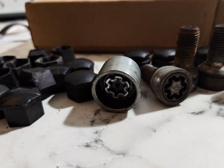 Original Audi alloy wheels good condition gloss black with it all black wheel nuts and caps and also X4 original Audi locking nuts with key