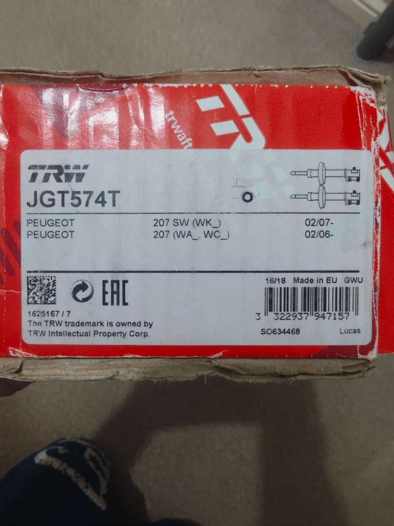 Posting for 6+ yearsPeugeot 207 TRW Twin JGT574T Shock Absorbers (x2) Rear Suspension 5206FS 5206QX 5206LF 5206JQ