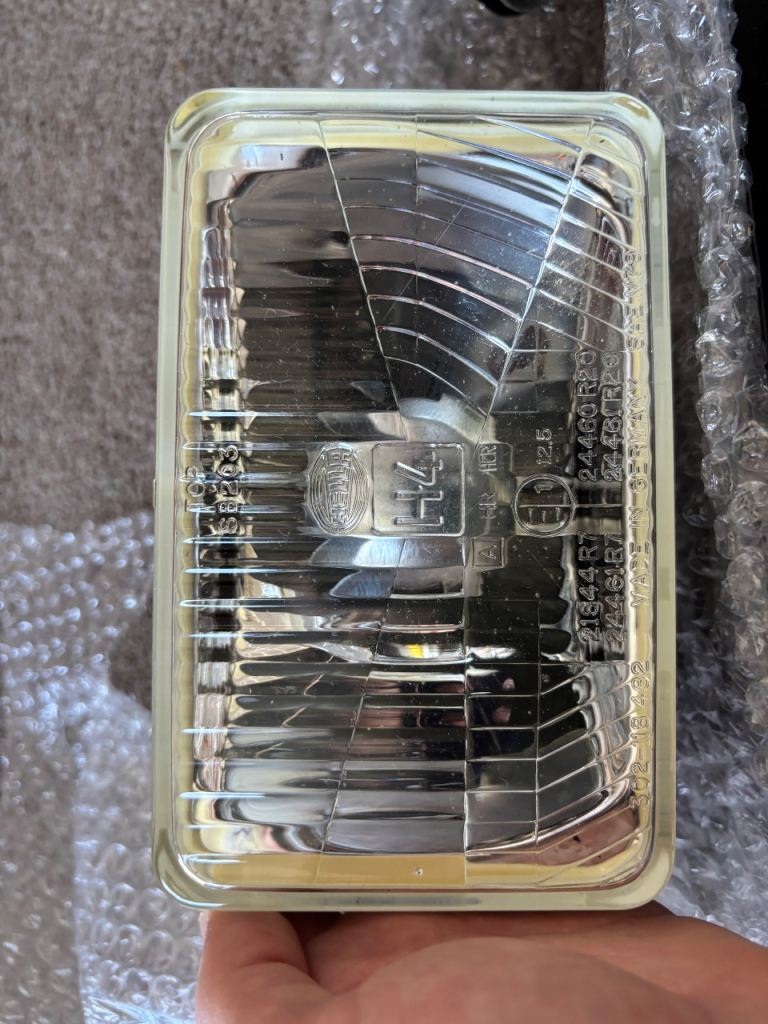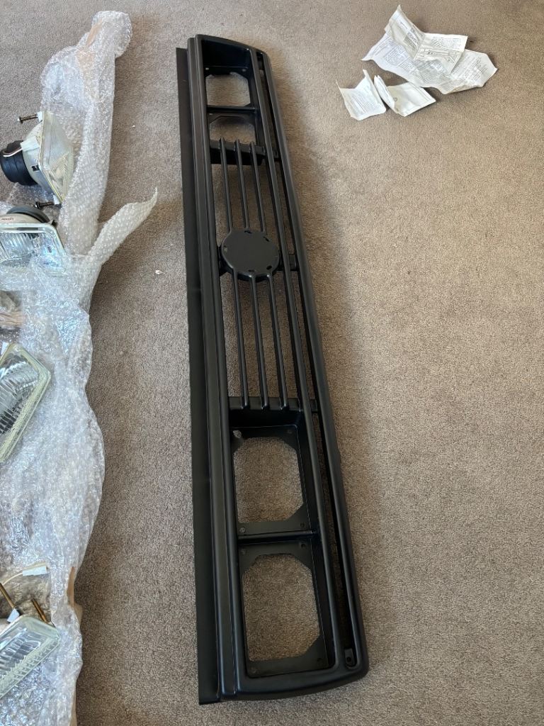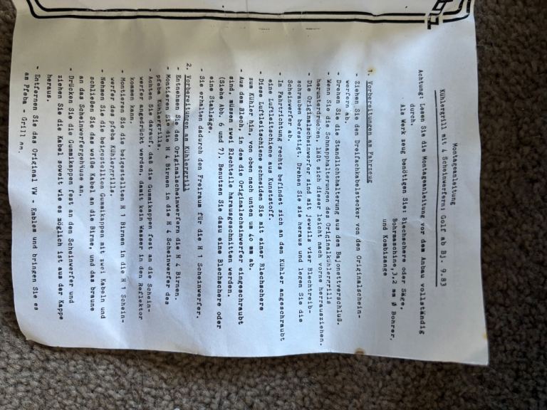 Extremely rare and original Pfeba MK2 square light conversion kit. This was acquired by my grandad in the early 80s from Volkswagen (Manufacture date October 1983), and has never been used or fitted. Brand new Hella lights (one is missing a cap on the back). The grille has some light marks around where the lights were sat resting in it for so long. Apart from that its absolutely mint. The kit comes complete with a fitting kit, and a full set of instructions (all in German and Dutch).