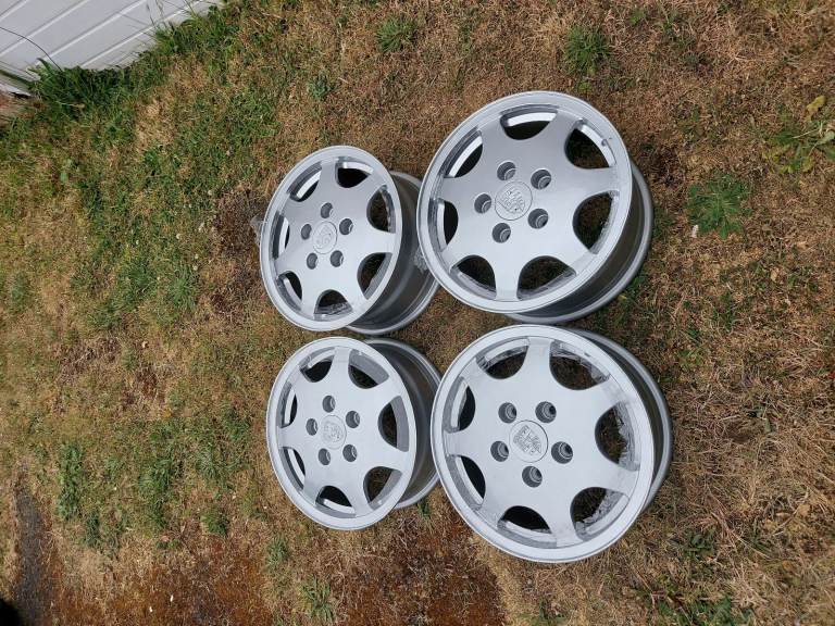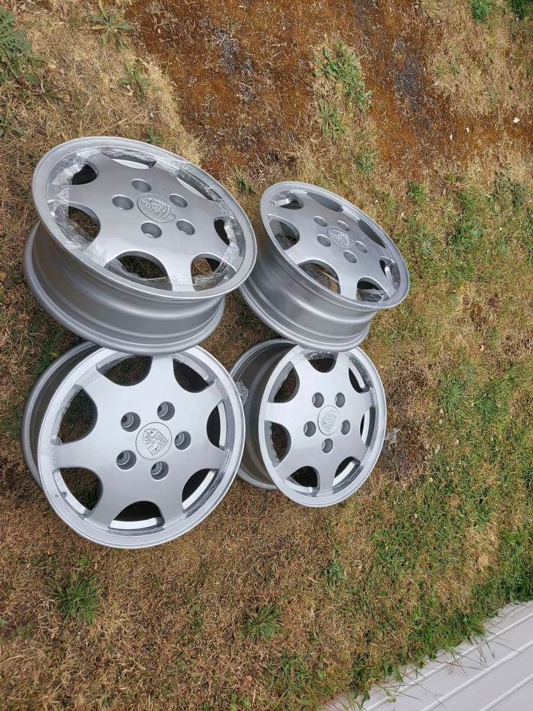 1SET OF PORSCHE D90 FULLY REFURBISHED ALLOYS WHEELS 16 X 500 STAGGERED. THE FRONT ARE 6JX16 ET 52.3 AND THE REAR ARE 7J X 16 ET55 AND IN VERY GOOD CONDITION, CURRENTLY IN STORAGE AT THE MOMENT AND NEVER BEEN BACK ON ANY VEHICLE SINCE THE REFURBISH. ALSO AVAILABLE FOR SALE PORSCHE
