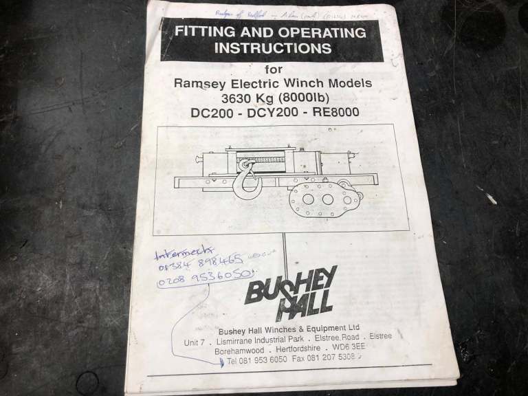 Ramsey RE8000 electric winch 12volt. Had this fitted to a Defender and fitted a new Bosch electric motor. Comes with instructions, 1L oil for worm drive, 1¼ L oil for spur gearbox and fairlead. Collection from Market Rasen, Lincs.