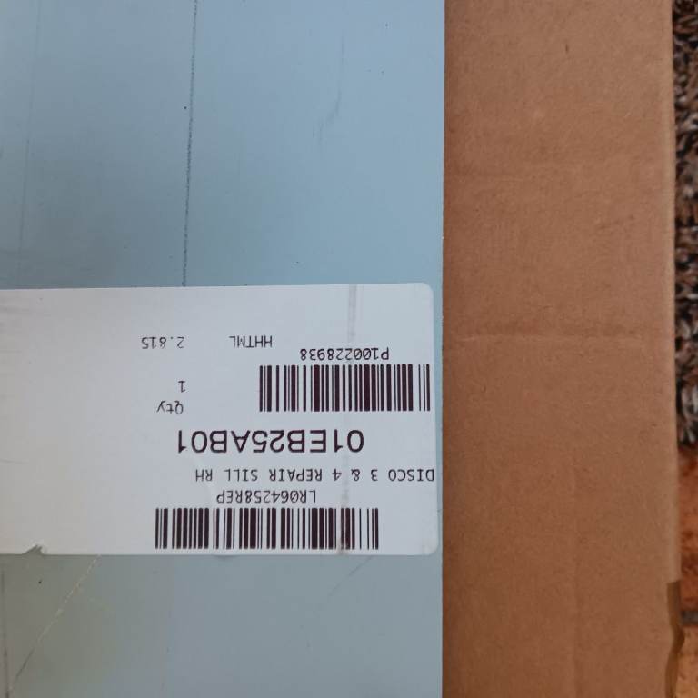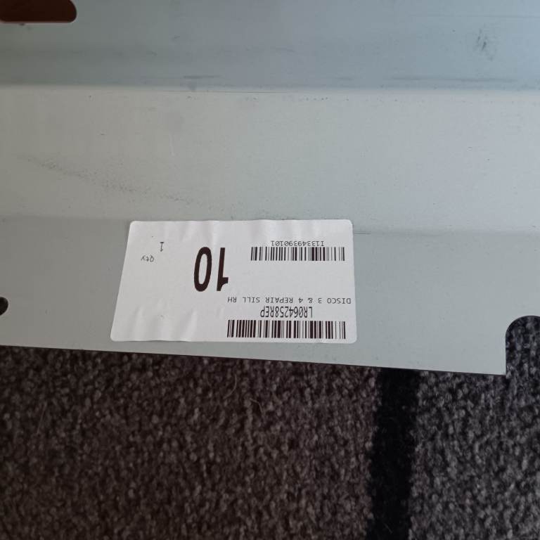 Replacement after-market OUTER Sills from a recognised parts supplier, as ordered by the classic car gargage doing the SIX welding repairs required after running board removal; from my Disco 3. Also fit Disco 4. These weld onto a vertical lip and go under the plastic Sill trim.