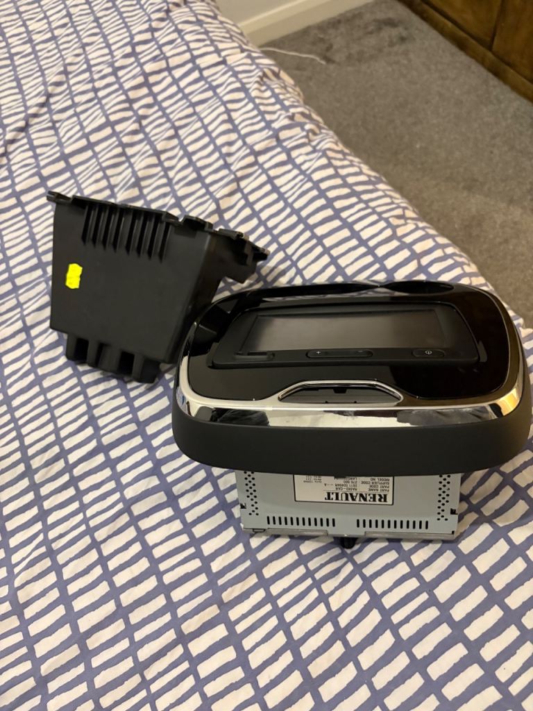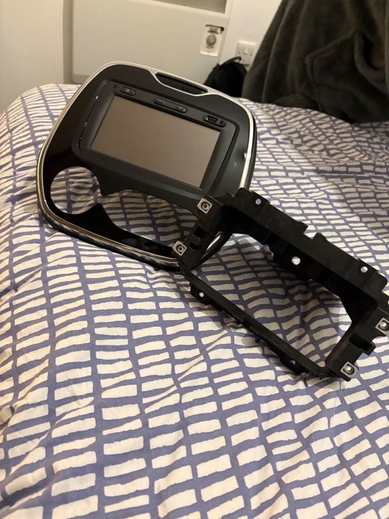 Selling a Renault OEM infotainment / display module with surrounding trim and mounting bracket. in good cosmetic condition (see photos), perfect for replacing a damaged screen or upgrading a vehicle of the same model.