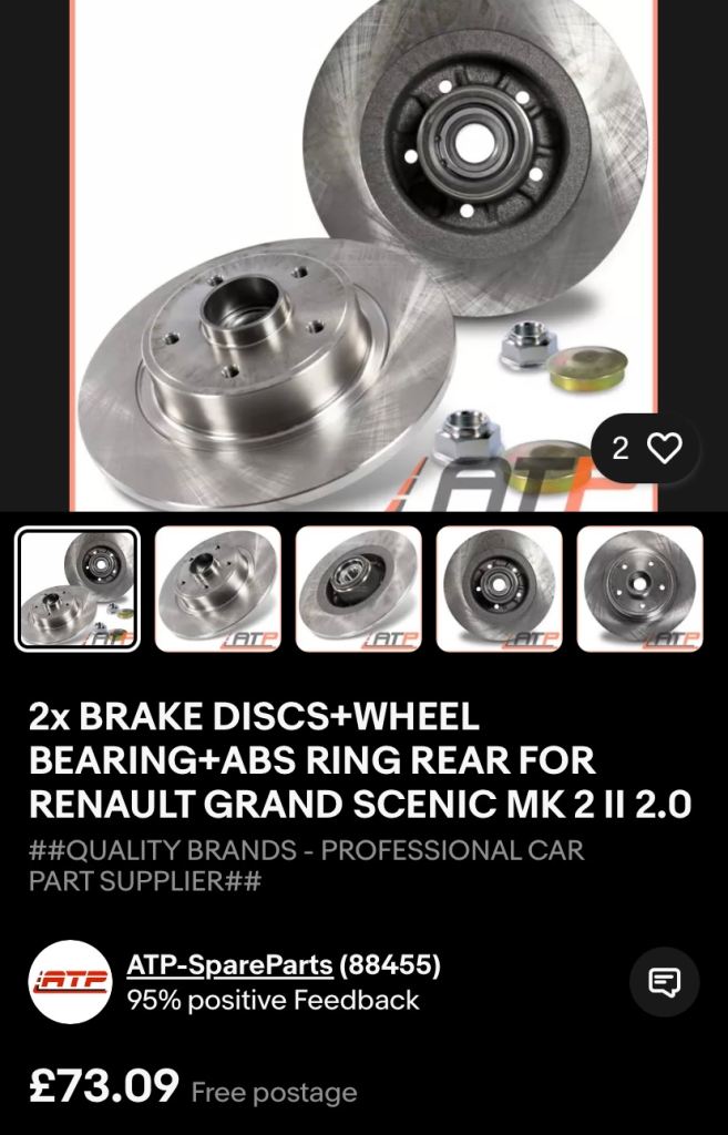 Posting for 19+ yearsRenault Scenic mk2 Rear Disks with wheel bearings