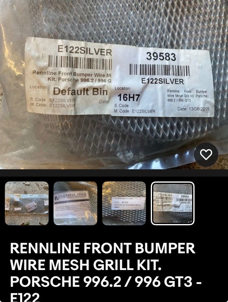 Posting for 11+ yearsRENNLINE FRONT BUMPER WIRE MESH GRILL KIT. PORSCHE 996.2 / 996 GT3 - E122
