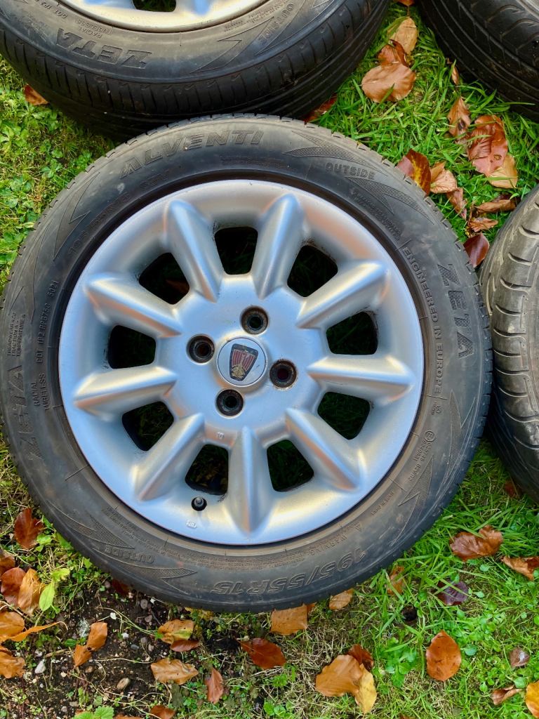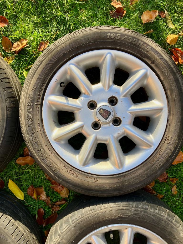 Set of 4 genuine Rover/MG 15" Fission alloy wheels with tyres. Removed from my Rover 45 which had only done 41,000 miles before I scrapped it. Good condition.