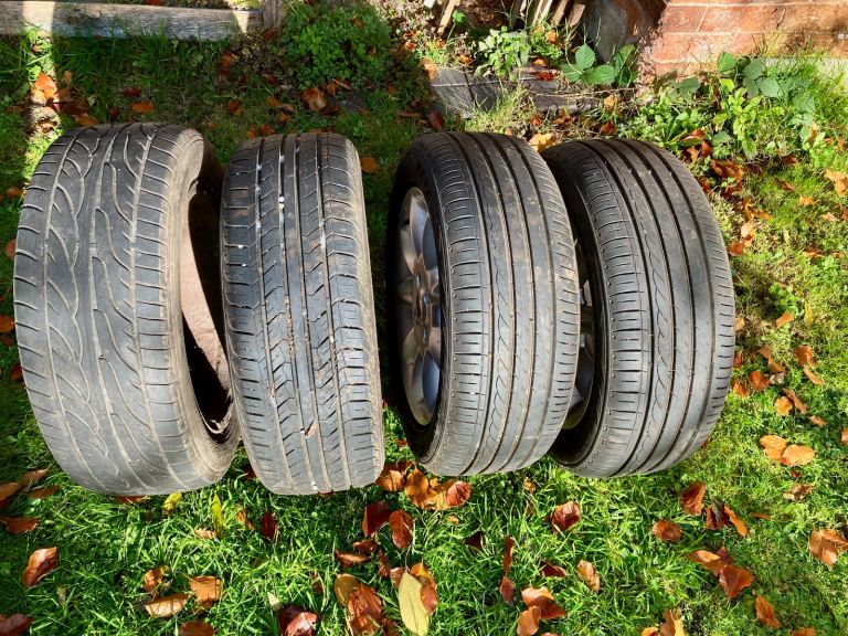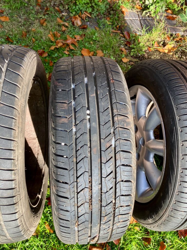 1 tyre with lots of wear but still legal and usable