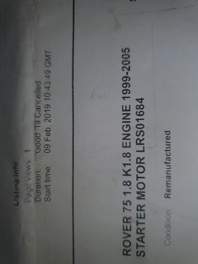 Rover 75, 1.8 starter motor petrol 1999 - 2005