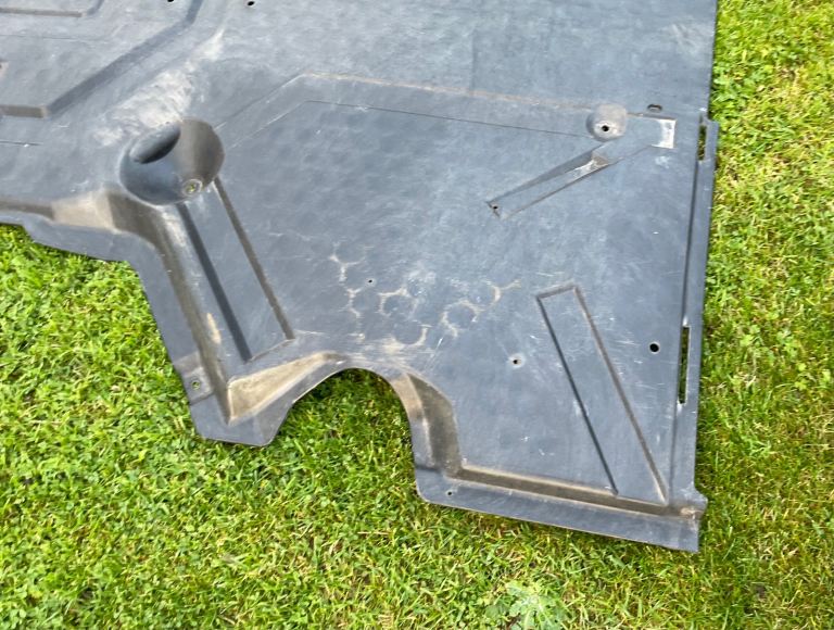All mounting holes are good. Two minor plastic welded repairs [done on the inside so not visible when fitted on car] both approx 6cm long [ see pictures] .
