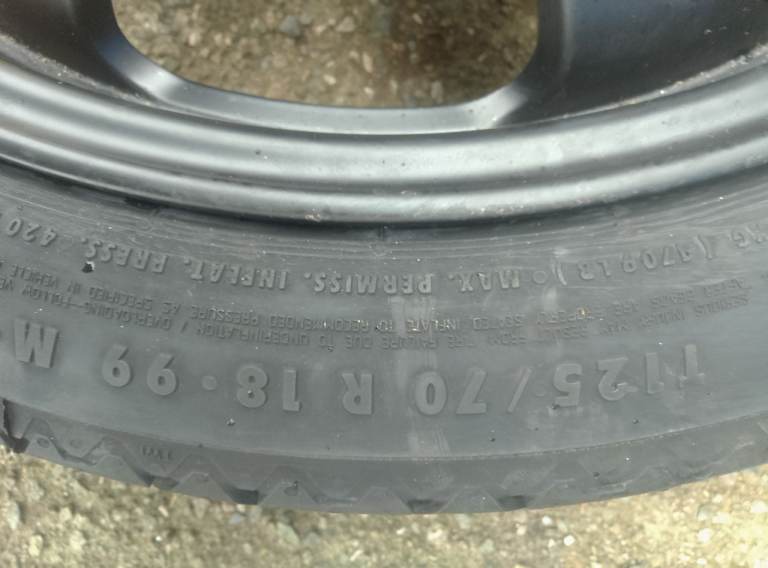Never been used space saver wheel . Continental T125/70 R18 . (64cm radius) 5 studs.