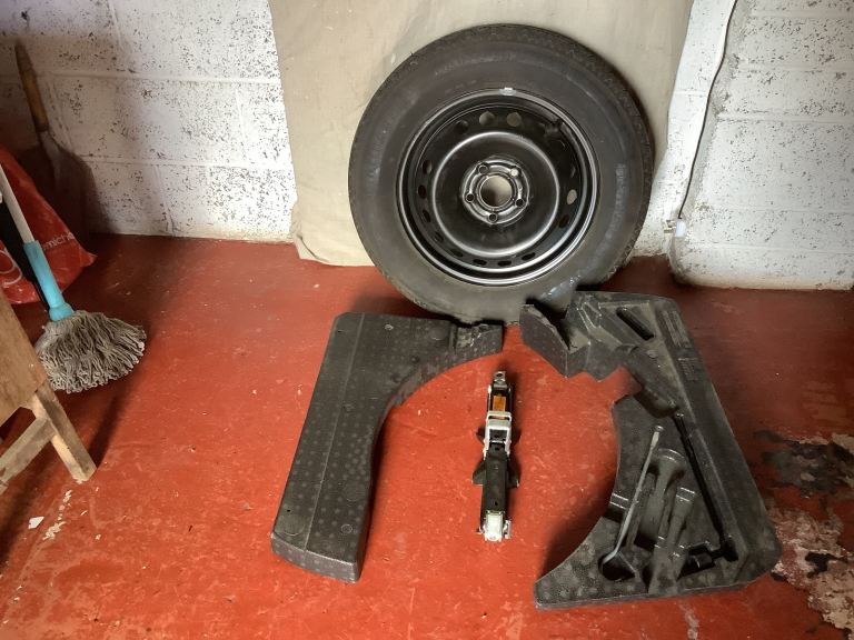 Spacer saver wheel for Nissan qashqai, never used, complete with jack with tools. All packing to fit boot space for secure storage. Selling at half price, includes a new full set of window wiper blades, (set of 3)