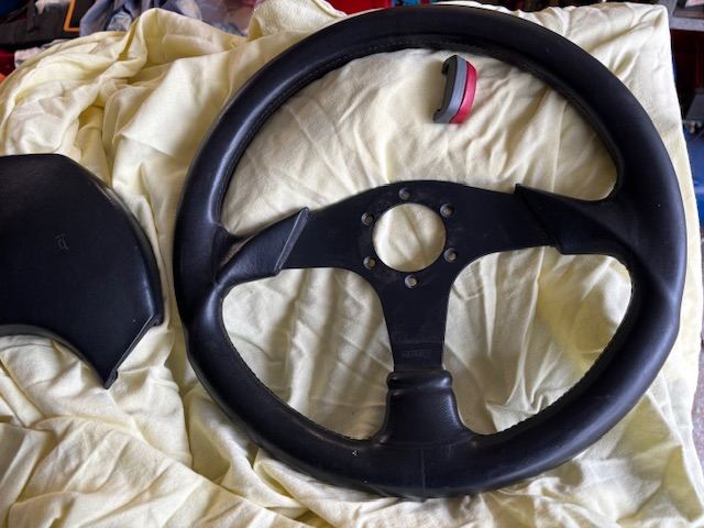 This Momo 13 inch steering wheel was originally fitted to my Volvo and has interchangeable steering coloured stripes.