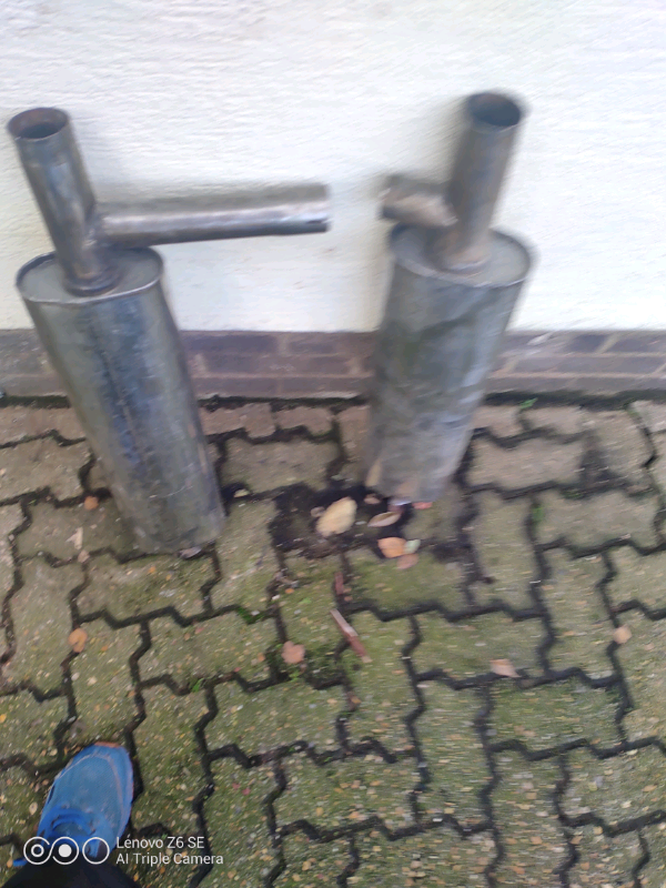 TR8 / TR7 center vox silencers stainless steel exhaust silencers they are used silences with the adapters to put them into a stainless steel system supplied by rima brothers site or use the catalog you'll see they do exhaust system with four silencers what I've got for the center boxes I remove them not long after I lowered the suspension on my tr as they keep touching things on the ground there's a few dents but nothing serious they work fine they don't blow.