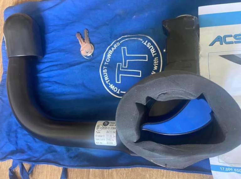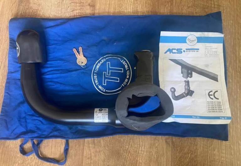 This product is a new and unused ACS tow bar with a foam buffer ring, designed for rear placement on a vehicle. The tow bar is in black colour and is manufactured by ACS systems. It is a high-quality accessory for towing purposes, ensuring durability and reliability for your vehicle. Ideal for those in need of a sturdy and dependable tow bar system for their car.