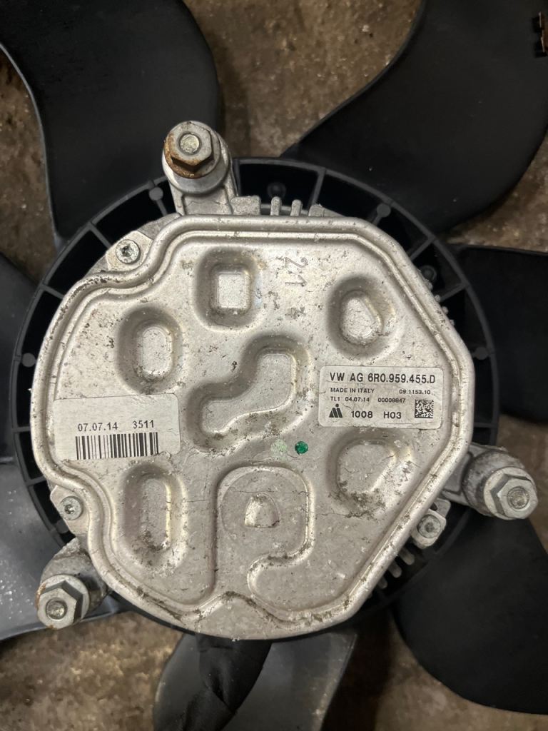 Genuine Volkswagen Polo radiator fan. Tested and working. Part Number 6R0959455D 0️⃣7️⃣8️⃣5️⃣8️⃣2️⃣3️⃣1️⃣4️⃣3️⃣3️⃣