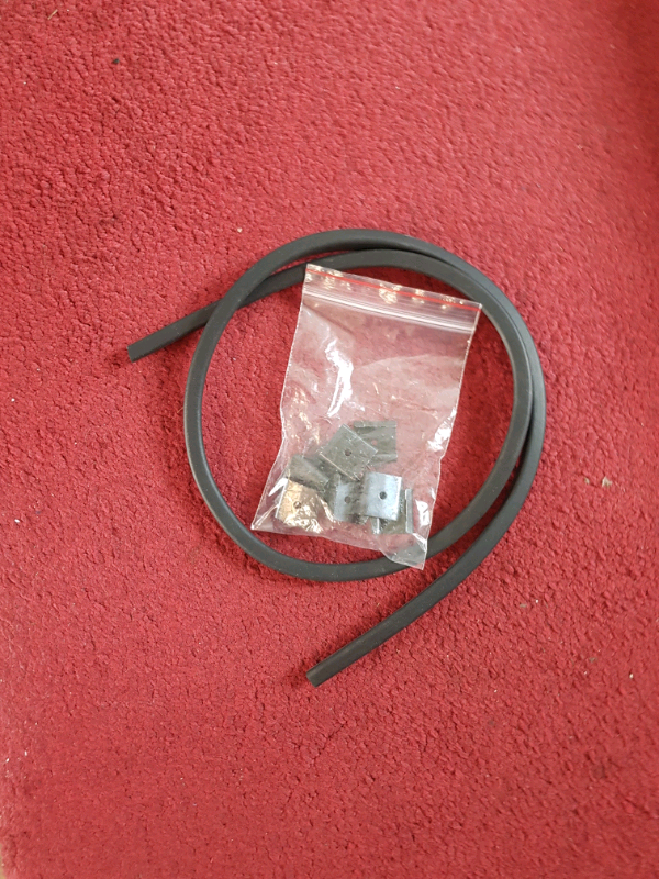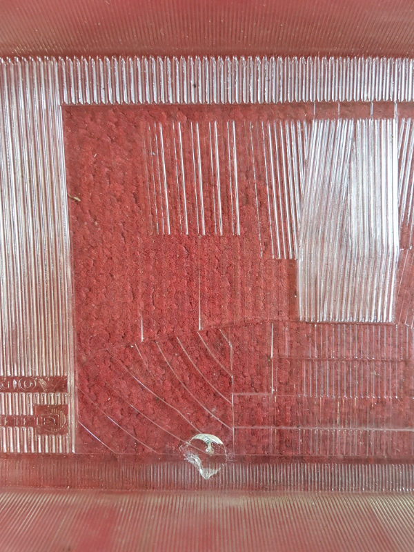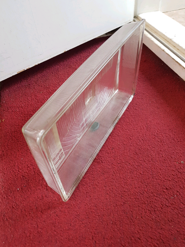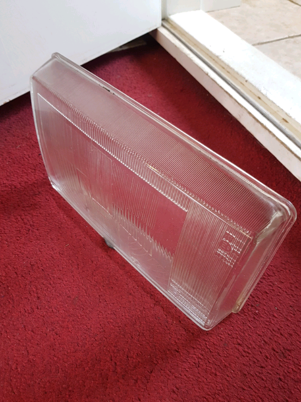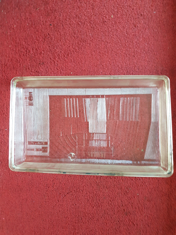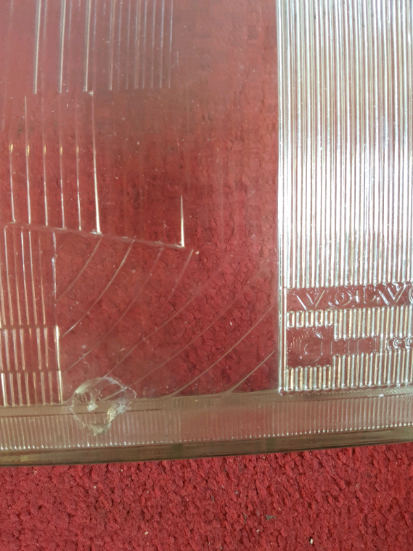 VOLVO 240 NEAR SIDE USED HEADLIGHT GLASS WITH RUBBER SEAL AND CLIPS, AS STONE CHIP BUT WATERTIGHT.